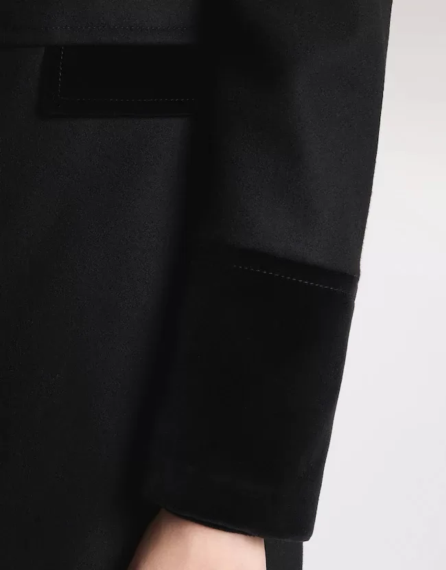 Dotato di un collo avvolgente e morbidi dettagli in velluto, è impreziosito da una chiusura con iconico gancio Fay e bottoni nascosti. Realizzato in morbido panno misto lana, è completato da tasche con pattina.